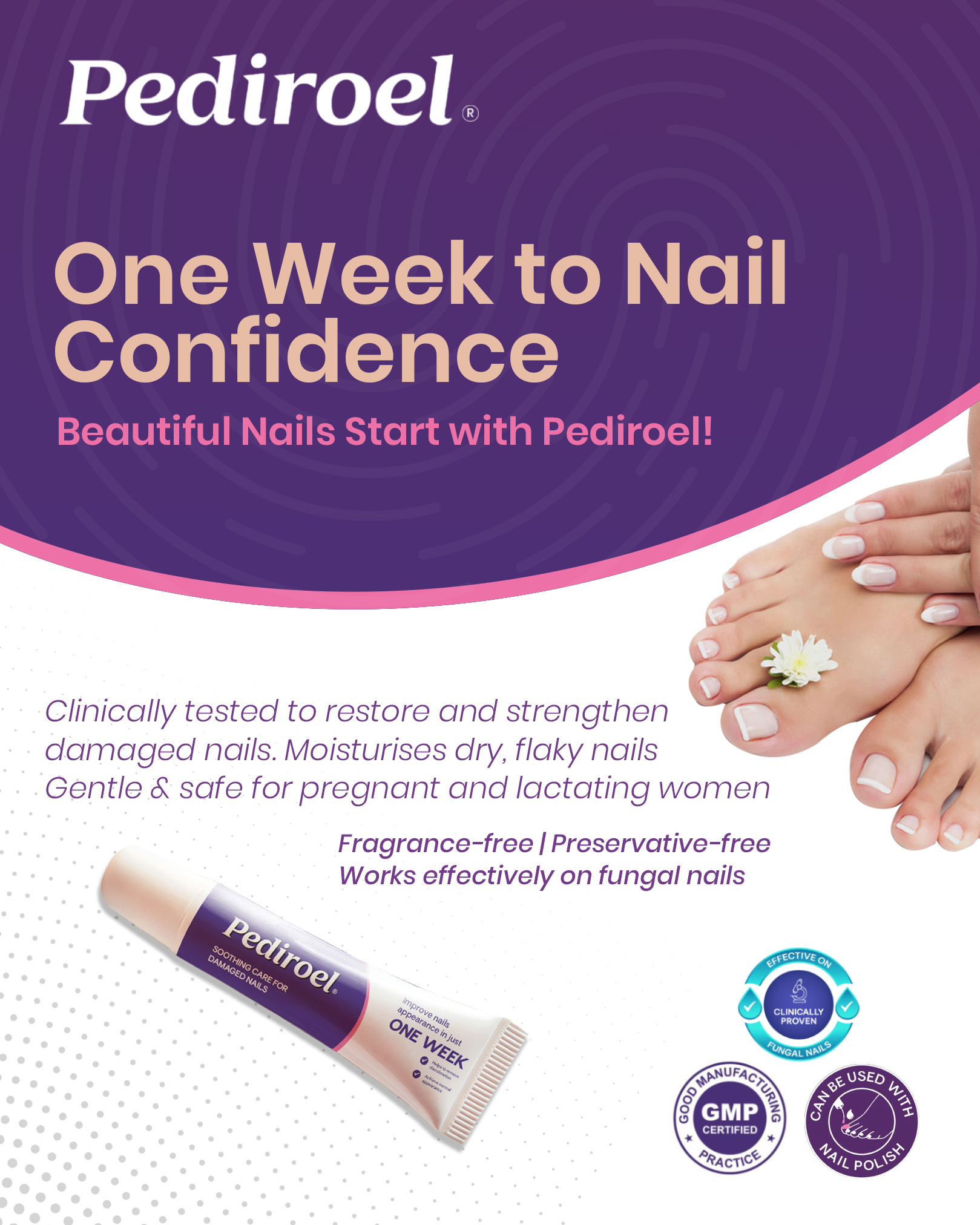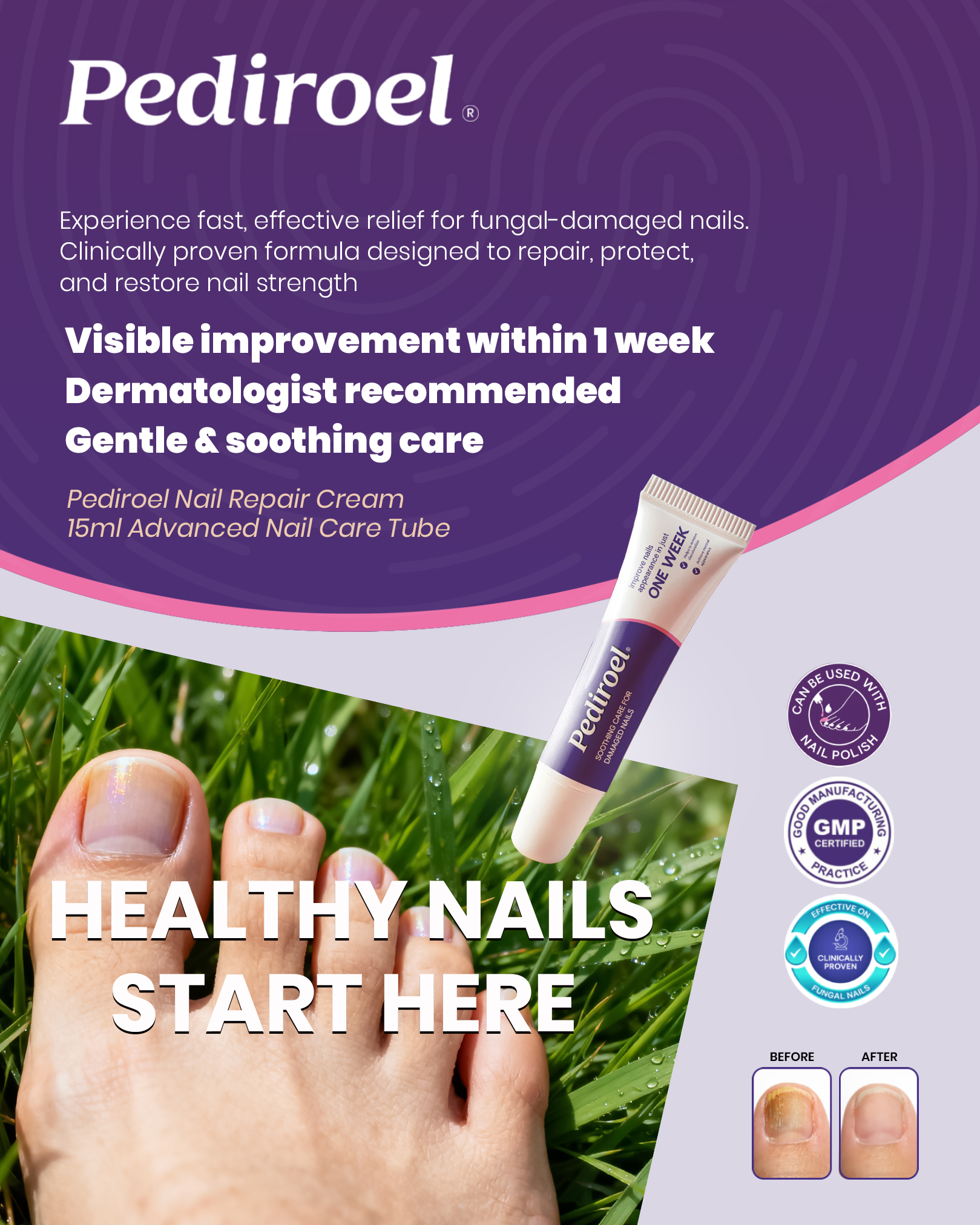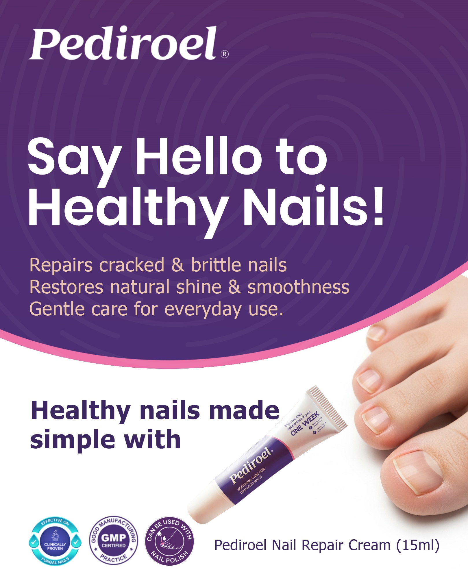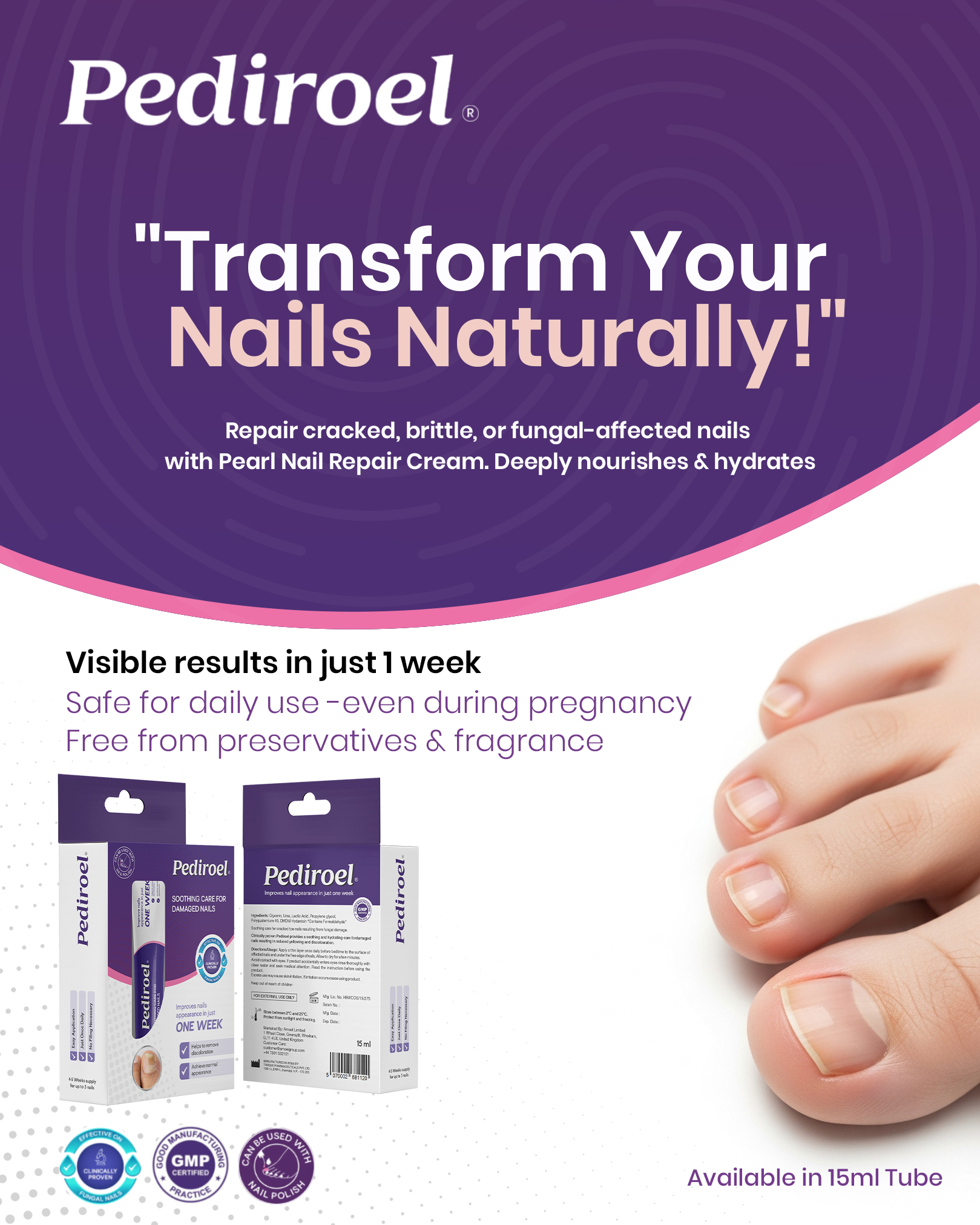 Pediroel® not only treats fungal infections but also enhances nail appearance. It conditions, nourishes, and restores your nails’ natural shine — making them look healthy, smooth, and attractive.