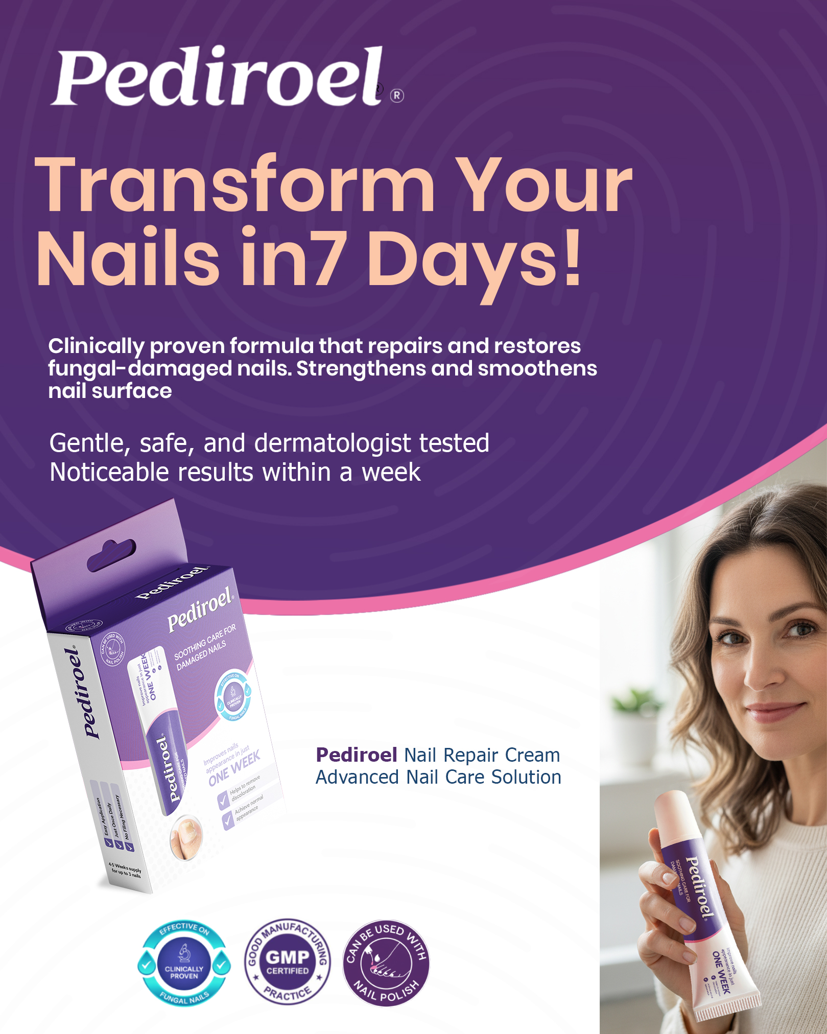 Pediroel® not only treats fungal infections but also enhances nail appearance. It conditions, nourishes, and restores your nails’ natural shine — making them look healthy, smooth, and attractive.